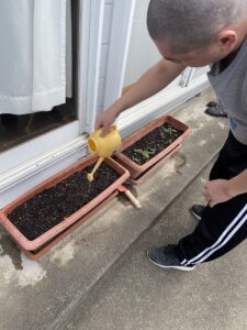 「どんな風に育つかな」と笑顔を見せながら、皆さんで水やりや生長を見守っています😌✨