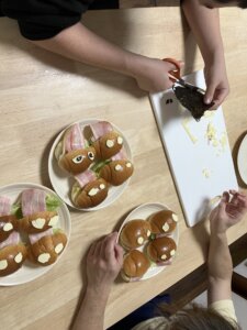 ロールパン飾りつけは、思いのほか細かく、苦戦しながらも、皆さん集中して楽しまれていました🎶