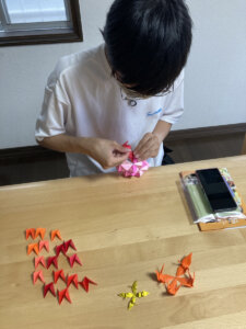 先日も、1枚の折り紙から なんと4羽の鶴 を折り上げるという驚きの集中力を見せてくださいました😮✨